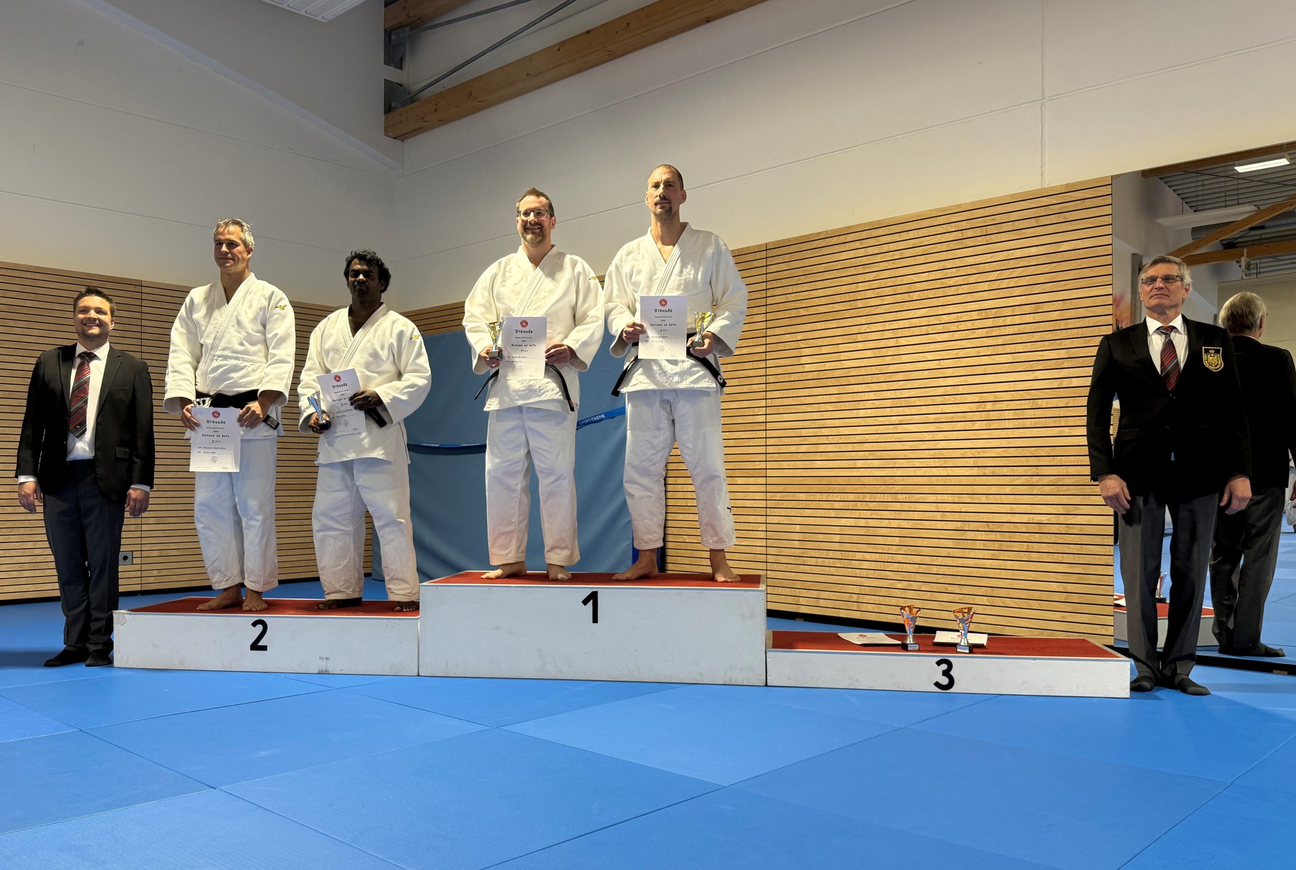 In der Katame no kata (Form der Kontrolle) gingen für die SVP Roland Gottwald und Martin Etter an den Start. Roland demonstrierte in äußerst präziser Form sowohl die Haltegriffe, als auch die Würge- und Hebeltechniken, so dass sie mit dieser Demonstration am Ende ebenfalls ganz oben auf dem Podest standen. Damit sicherte sich die SVP vier erste Plätze von insgesamt acht Kategorien und ist damit der erfolgreichste Verein beim Hanse Kata Pokal Turnier 2025. Die Budoabteilung der SVP gratuliert allen zu ihren tollen Leistungen.